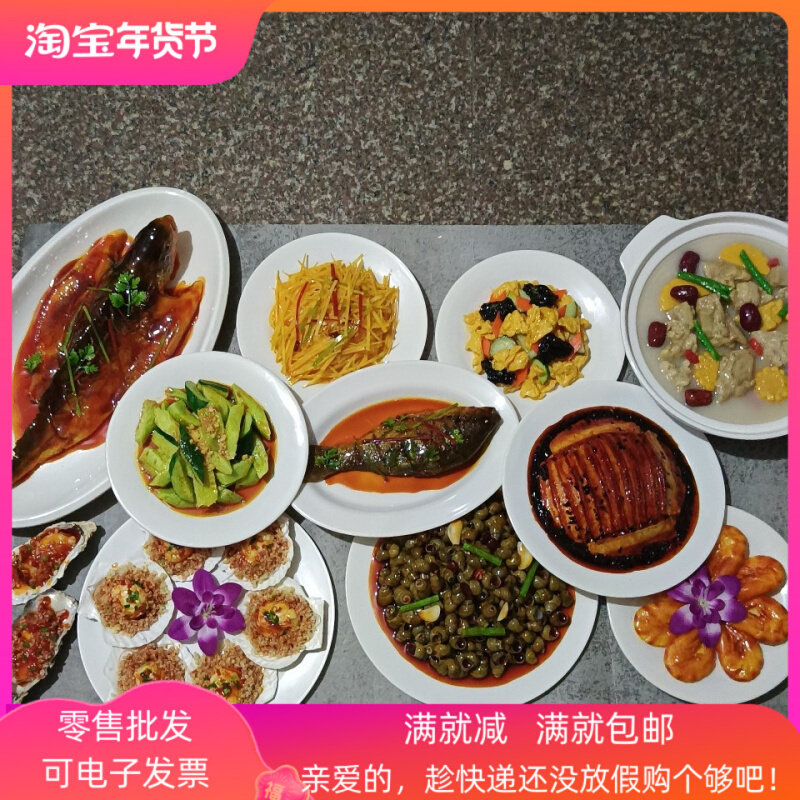 食q物模型梅菜扣肉红烧鱼木耳炒鸡蛋大虾扇贝海鲜拼盘厨房装饰道