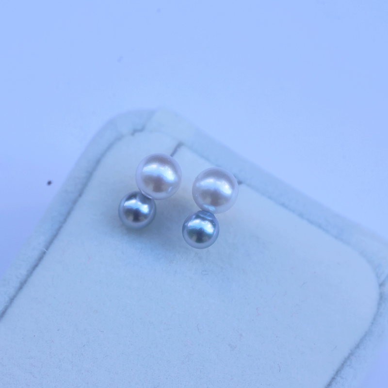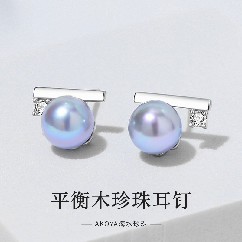 原创设计G18K金天然海水akoya 真多麻平衡木耳钉极简mini耳饰小众