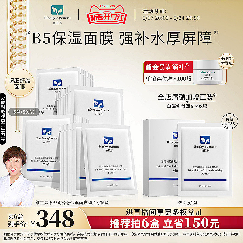 【皮肤专家力荐】百植萃维生素原B5海藻糖补水保湿呵护肌肤面膜