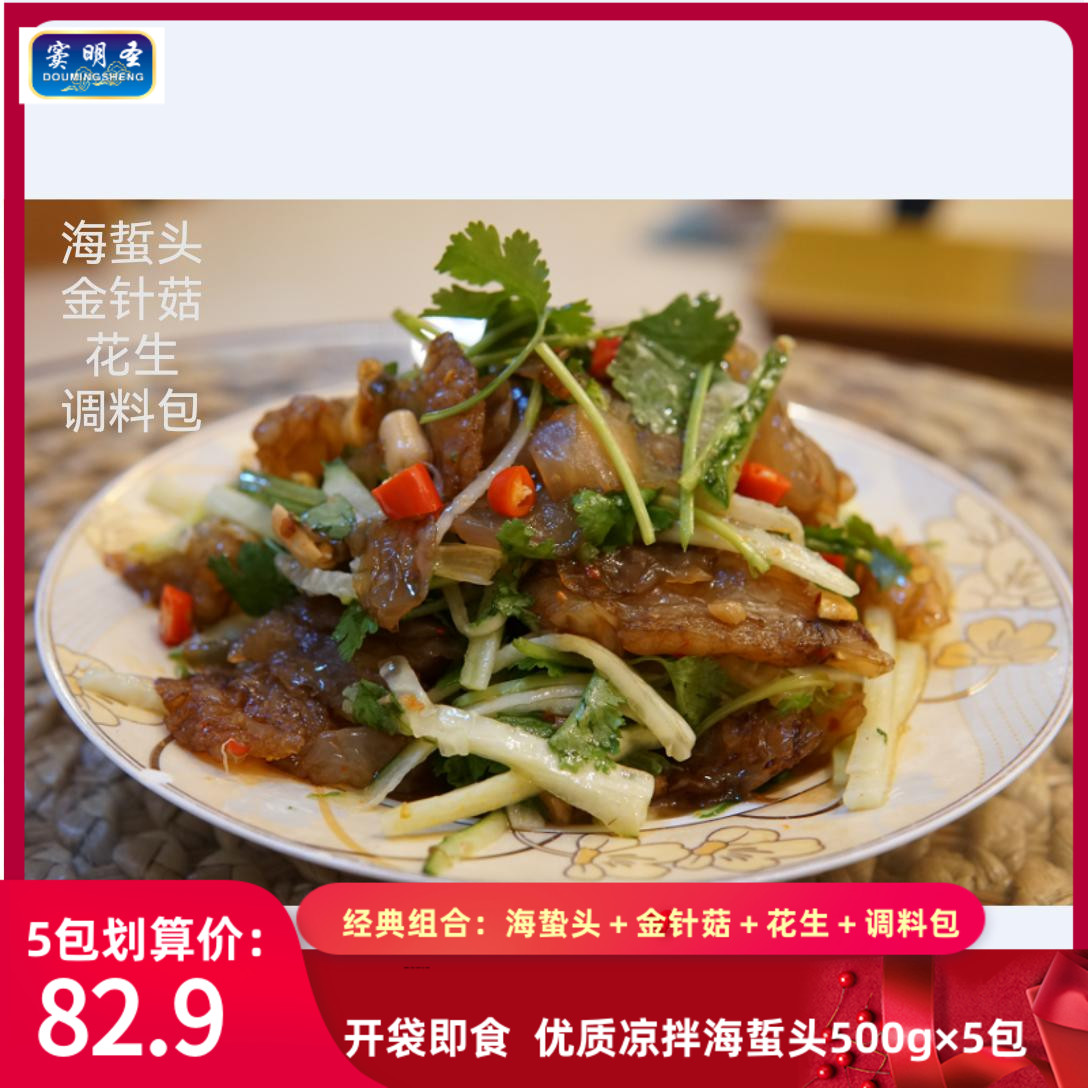斗姆岛野生海蜇头凉拌清脆爽口开袋即食含调味料金针菇花生500g