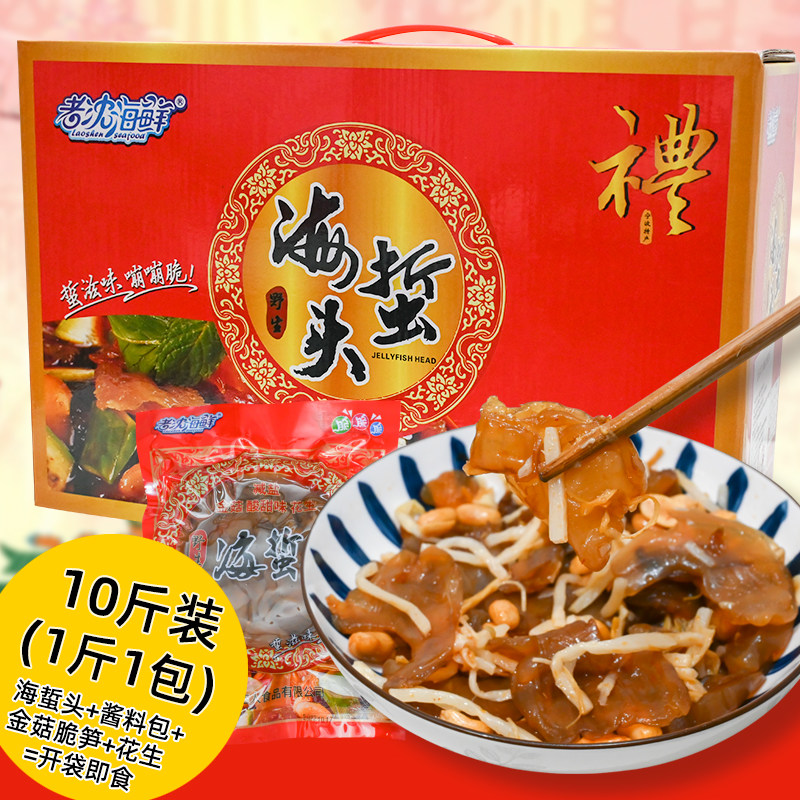 品三江海蜇头整箱海蜇即食鲜脆礼盒海蜇凉菜爽脆四合一年货10包