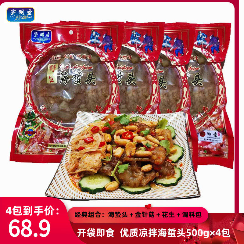 窦明圣海蜇头新鲜即食海蜇500g*4包四合一海蜇凉拌菜福建宁德特产