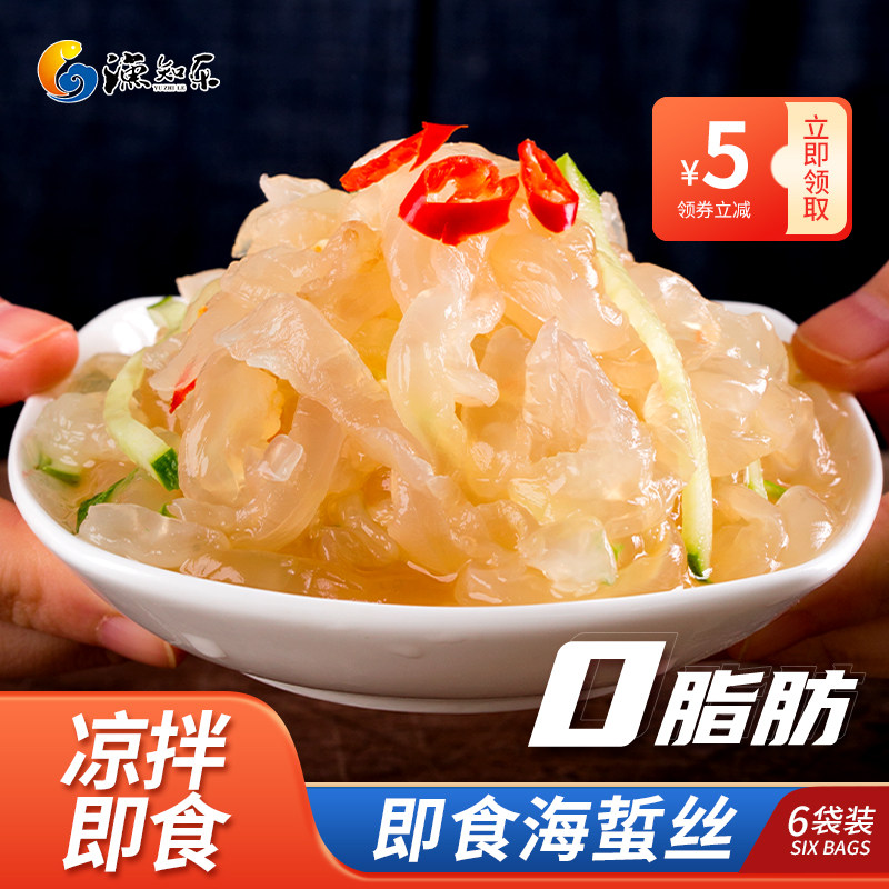 渔知乐海蜇丝非特级正宗即食凉拌菜海蜇皮225g*6袋开袋即食海哲头