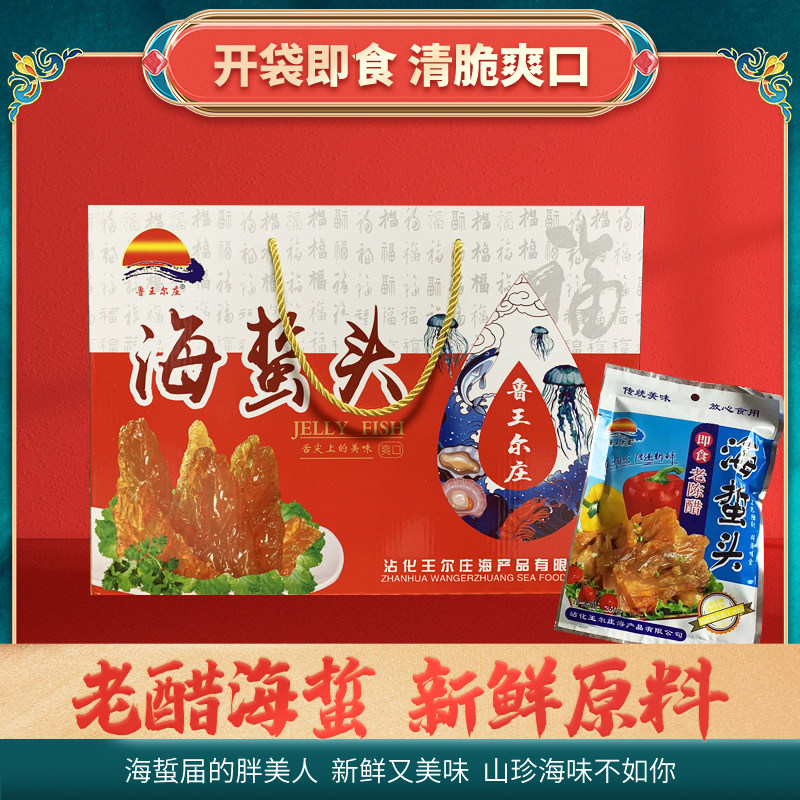 宁波海鲜水产特产即食海蜇头带调料包海蜇皮酒店凉菜海蜇头礼盒装