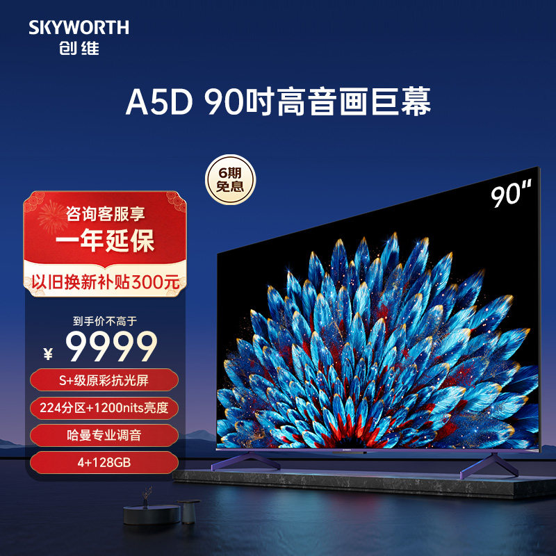 创维85A3D 85英寸4K超高清智能网络客厅家用超薄液晶电视机官方75