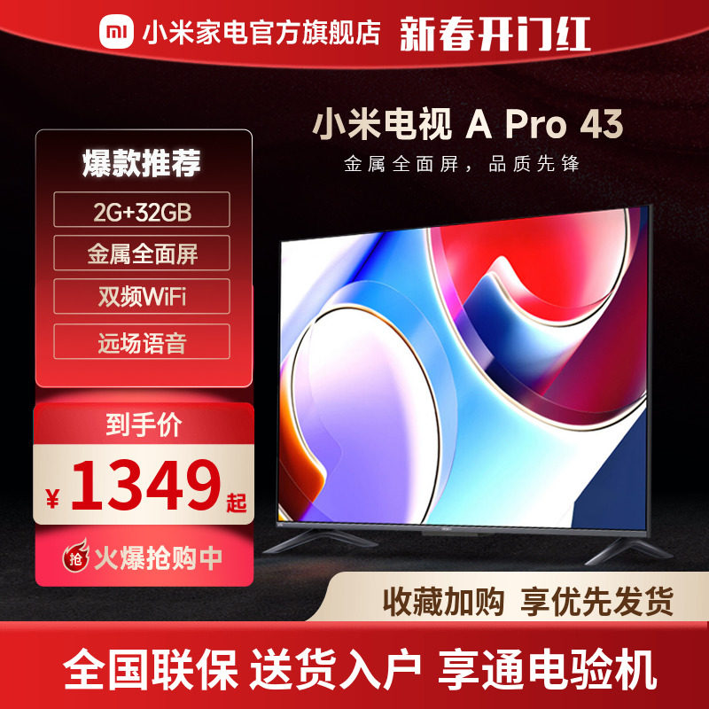 小米电视A Pro43英寸4K高清全面屏智能网络平板液晶电视机