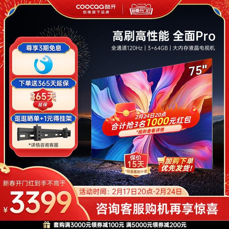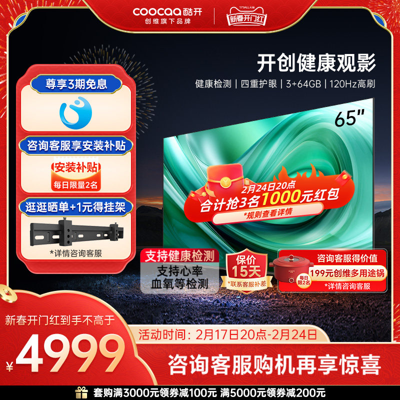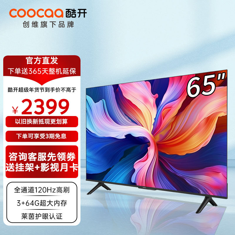 创维酷开65英寸K3 Pro超高清智能家用4K电视机全面屏液晶彩电官方