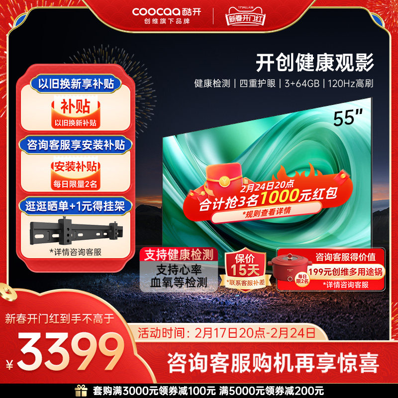 创维酷开K3 55英寸全面屏4K大内存网络智能投屏液晶家用电视机65