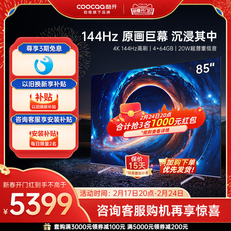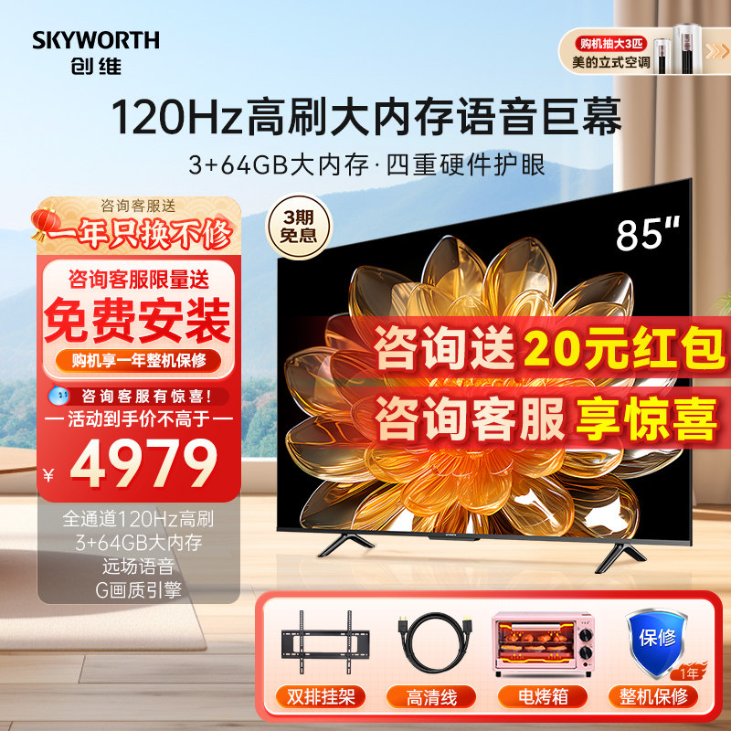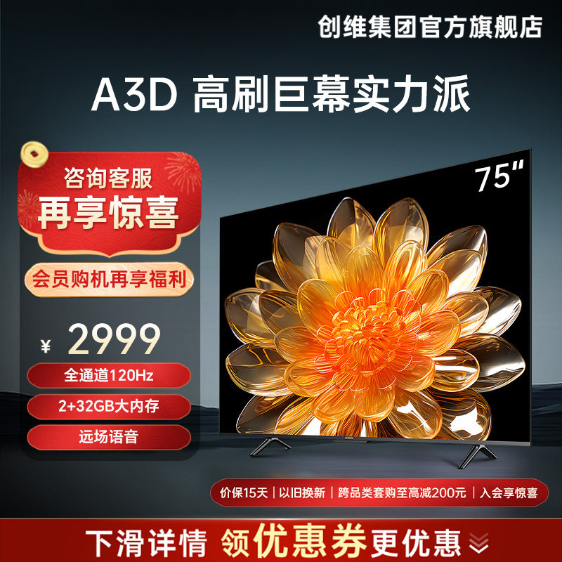 创维A3D 75英寸120Hz高刷智能语音液晶屏幕电视机官方旗舰店 85