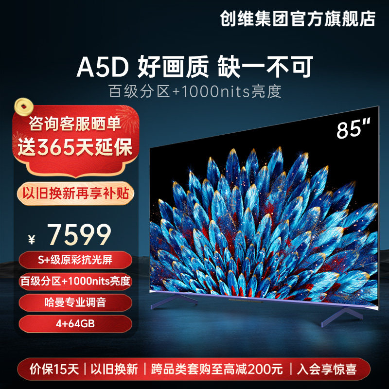 创维壁纸A7D Pro85英寸MiniLED无缝贴墙电视机 960级分区液晶家用