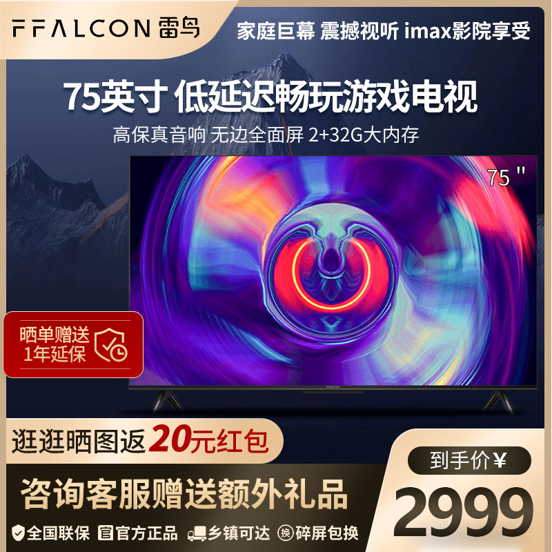 雷鸟 鹏6SE 75英寸4K高清智能网络语音AI全面屏液晶云游戏电视机