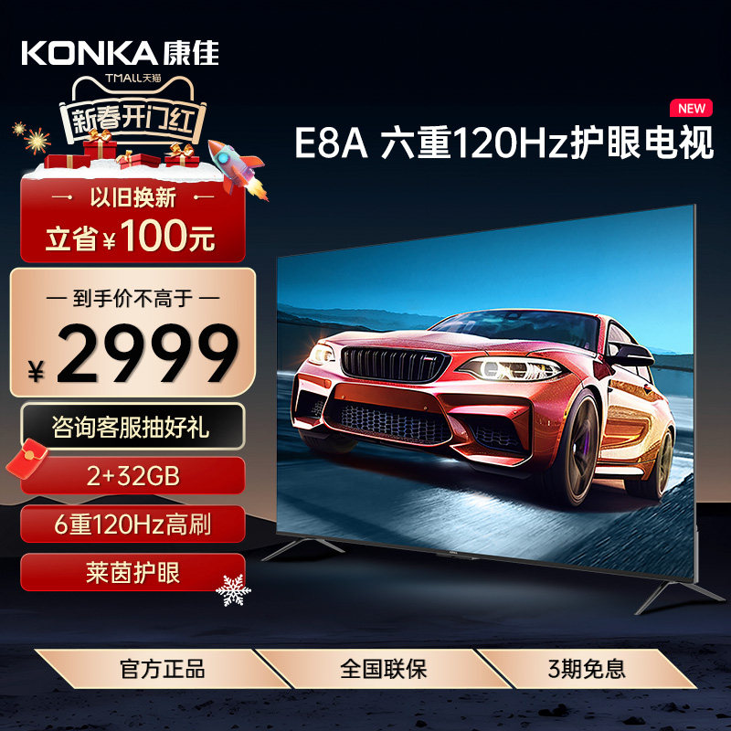 康佳 75E8A 75英寸4K120Hz高刷智能护眼声控语音液晶平板电视机80