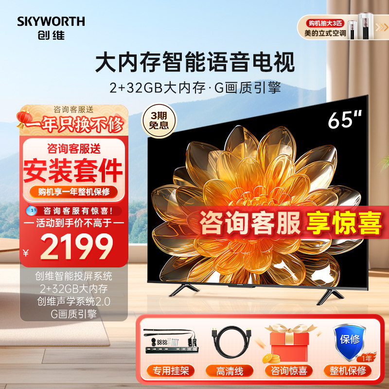 新品创维65A3D 65英寸4K语音客厅智能网络高清液晶电视机官方旗舰