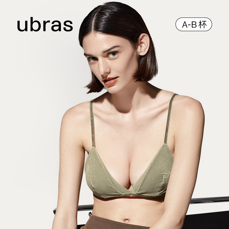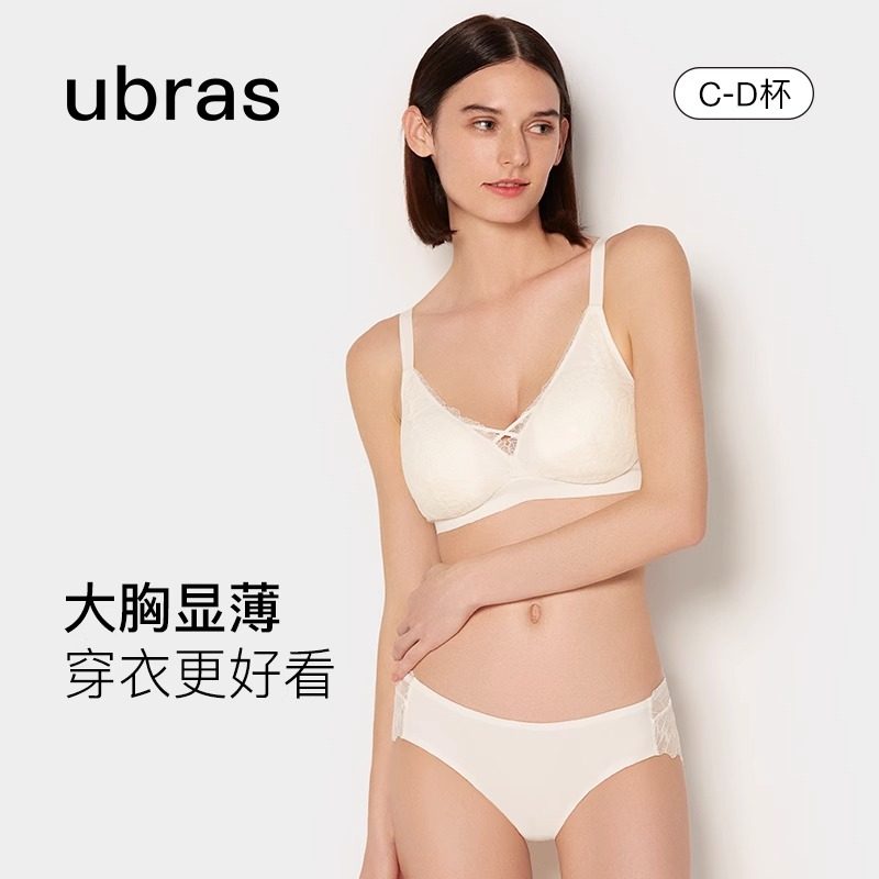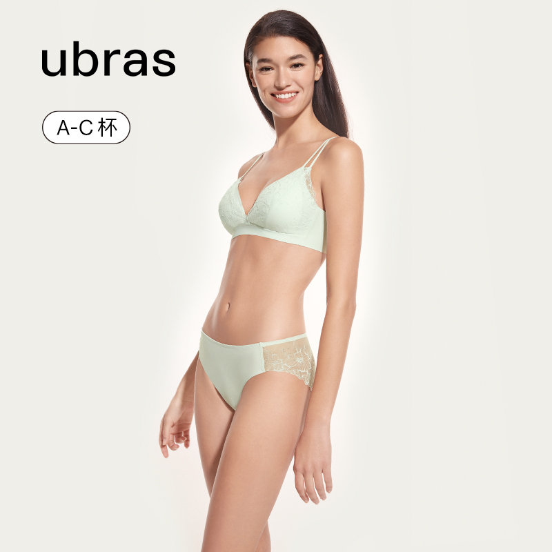 ubras春日蕾丝文胸双肩带无钢圈胸罩深V法式性感内衣女小胸聚拢