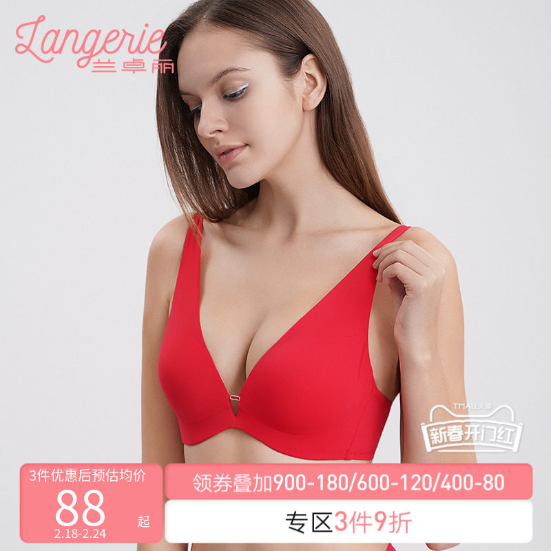 小胸聚拢软钢圈内衣女薄款舒适性感深V上托收副乳防下垂文胸罩