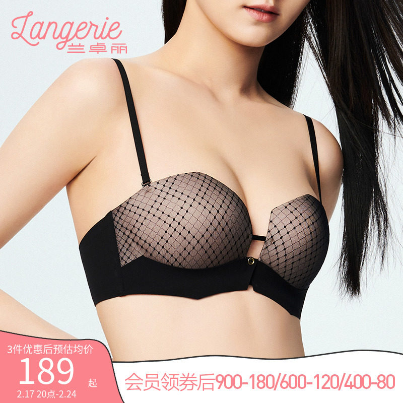 法式深V固定杯软承托字母内衣乳胶无痕果冻无钢圈女士美背文胸