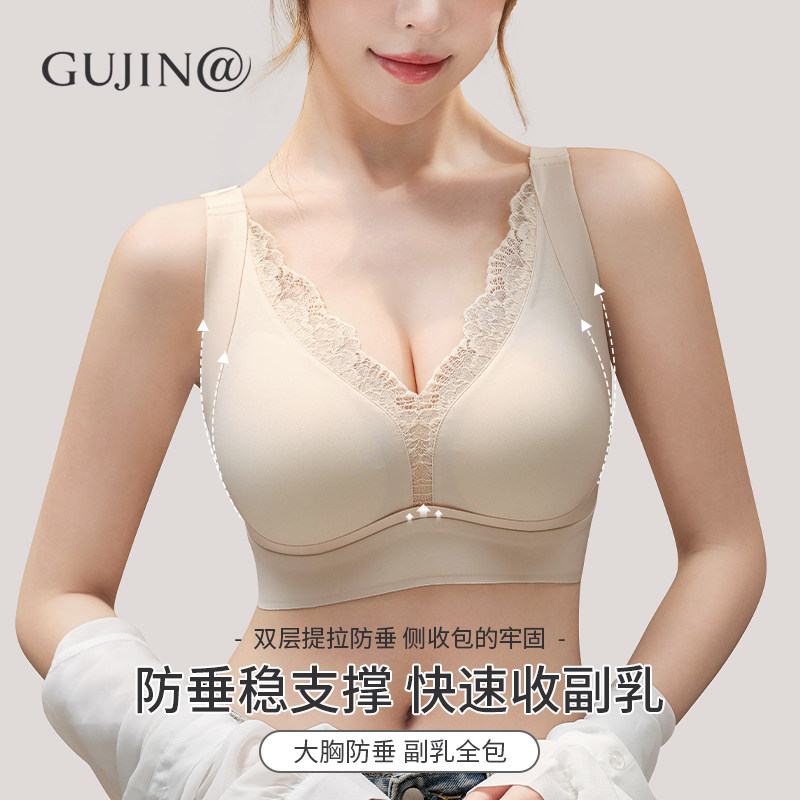 古今@深V性感大胸显小内衣女防垂蕾丝调整型快速收副乳防外扩文胸