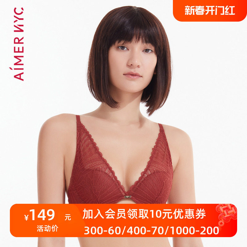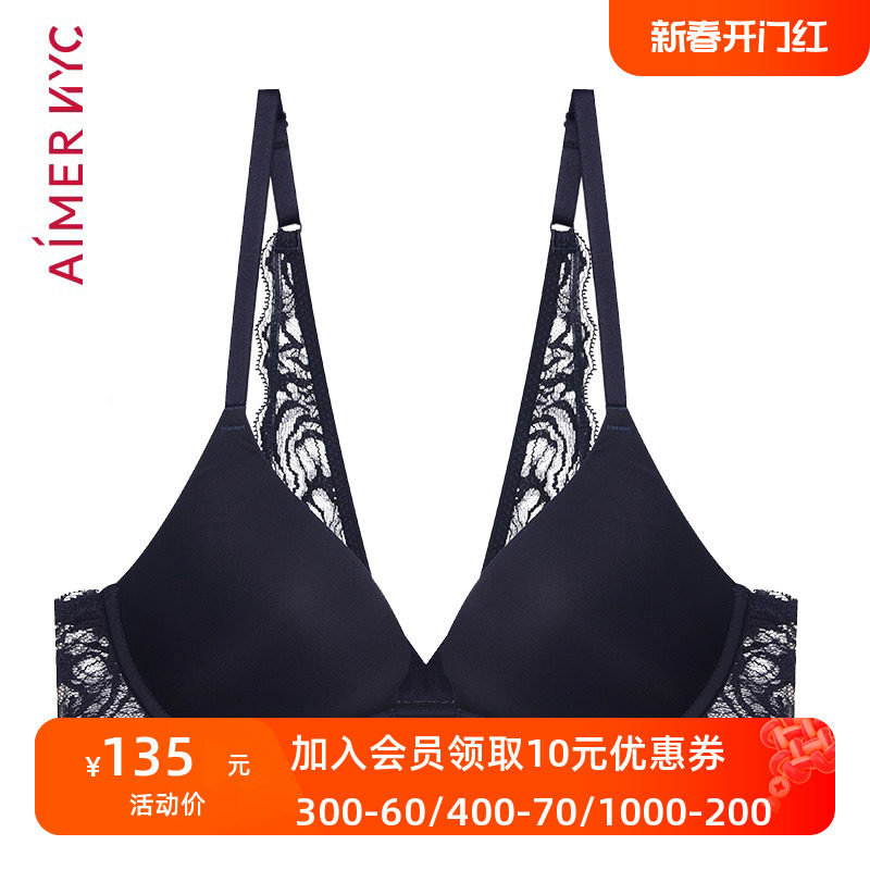 爱慕NYC官方正品性感蕾丝深V美背4/4薄模杯文胸AN110781