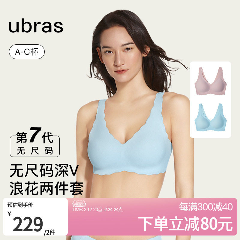 【实惠2件装】ubras无尺码深V浪花无痕无钢圈背心式文胸罩内衣女
