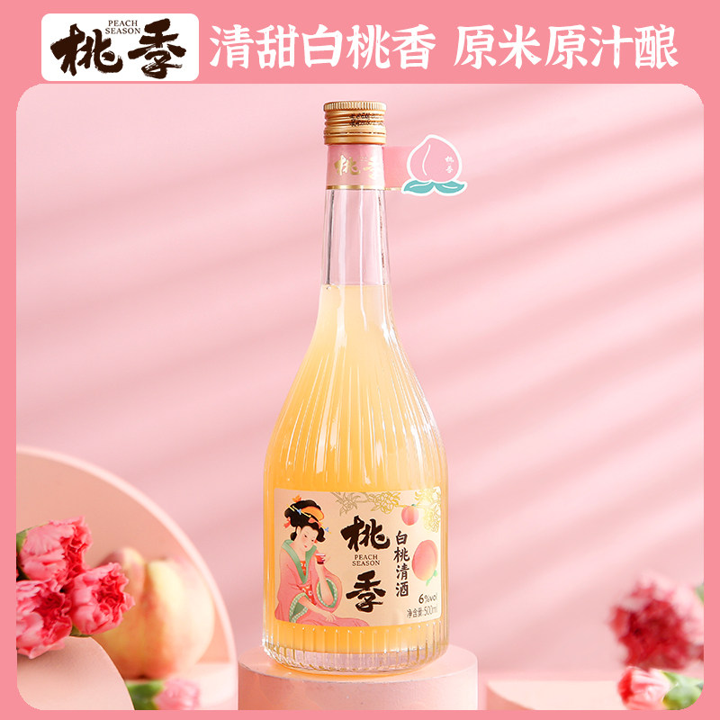 桃季糯米清酒6度500ml瓶装糯米酒低度酒微醺果味酒女士甜酒0添加