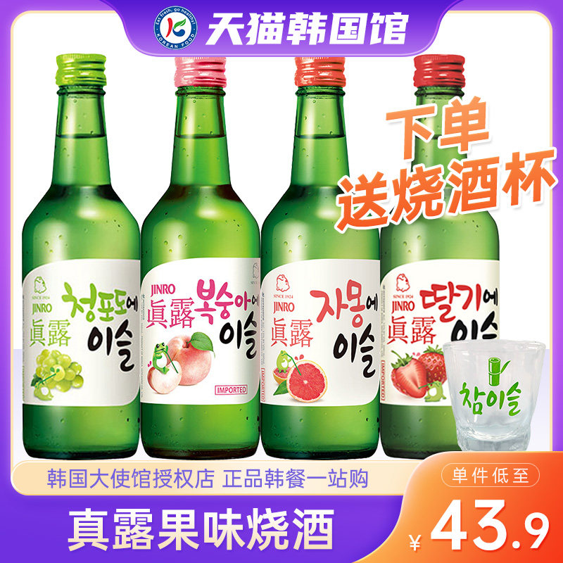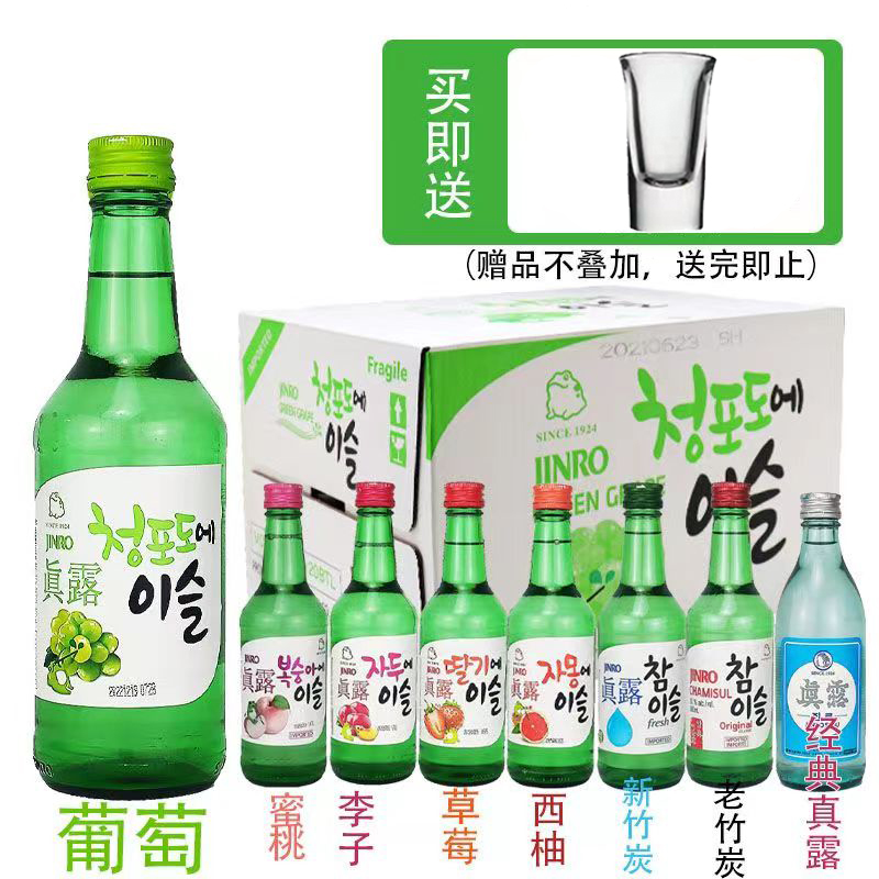 韩国真露烧酒葡萄味西柚草莓李子青提果味利口低度酒竹炭酒非清酒