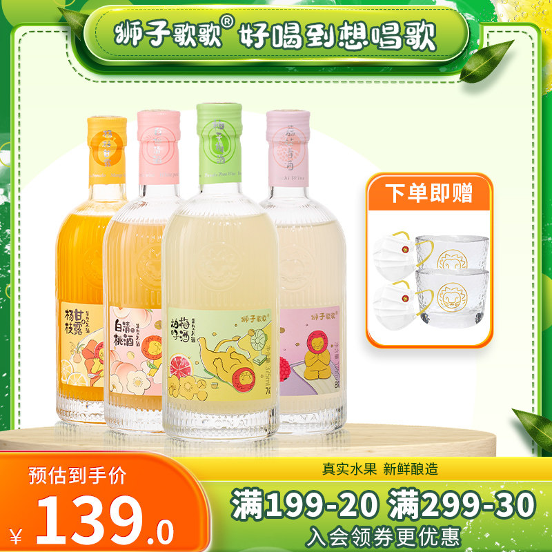 狮子歌歌荔枝清酒梅子酒白桃清酒女士低度甜酒果酒微醺酒375ml*4