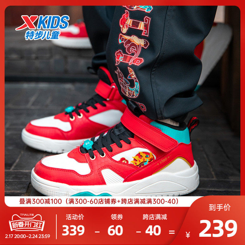 特步童鞋冬季男童鞋运动鞋中大童女童板鞋滑板鞋软底防滑儿童鞋子