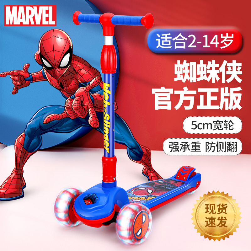 迪士尼儿童滑板车蜘蛛侠男孩3一6一12岁男童新款小孩滑滑车踏板车