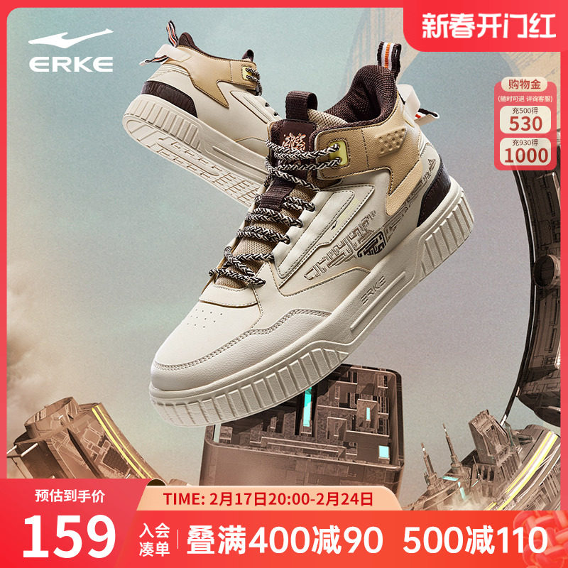 鸿星尔克男鞋高帮滑板鞋2024秋冬季新款红星缓震休闲鞋子运动鞋男