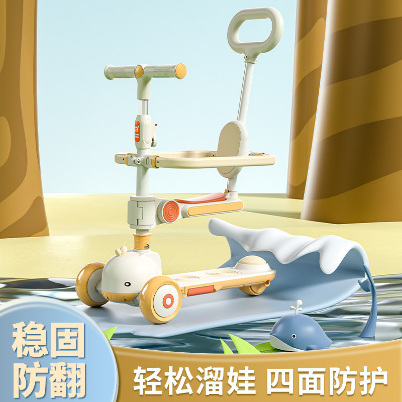 儿童滑板车1一3一6岁三合一可坐可推转弯座椅加装踏板滑滑溜溜车