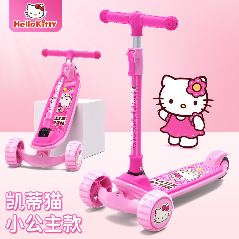凯蒂猫滑板车儿童3一6一12岁女童公主三合一溜溜车宽轮滑滑车女孩