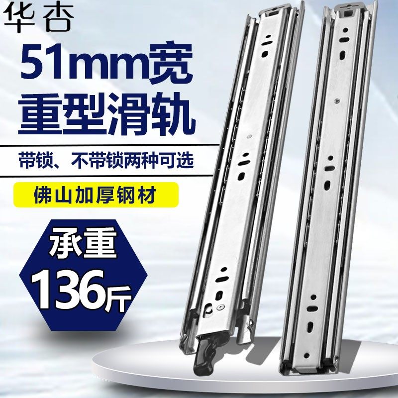 华杏重型滑轨51宽带锁抽屉轨道加厚三节侧装全展滑道承重工业导轨