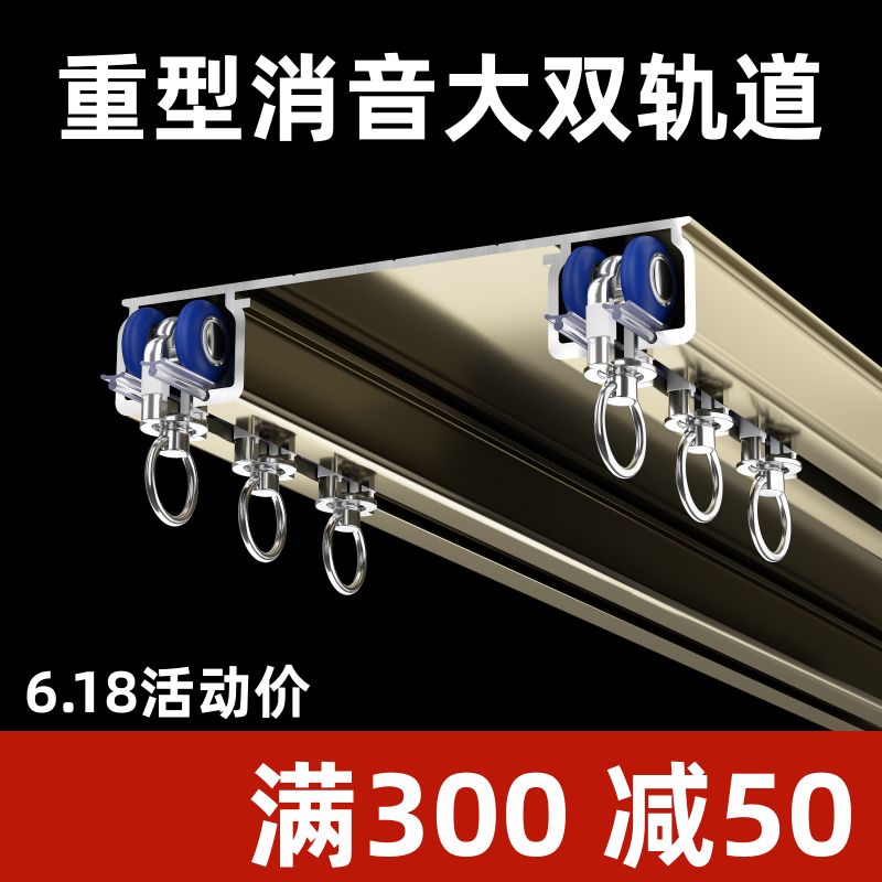 窗帘轨道双层双轨顶装滑轨滑道窗帘杆导轨静音窗帘盒免安装码打孔