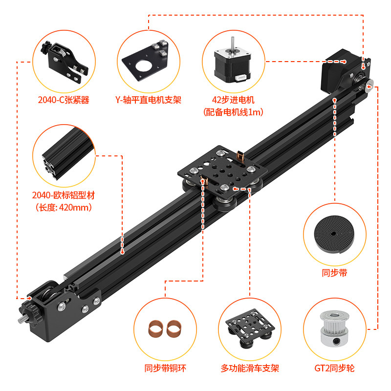 3D打印机摄像机滑轨欧标Y轴2040 V-Slot铝型材同步带滑台配电机