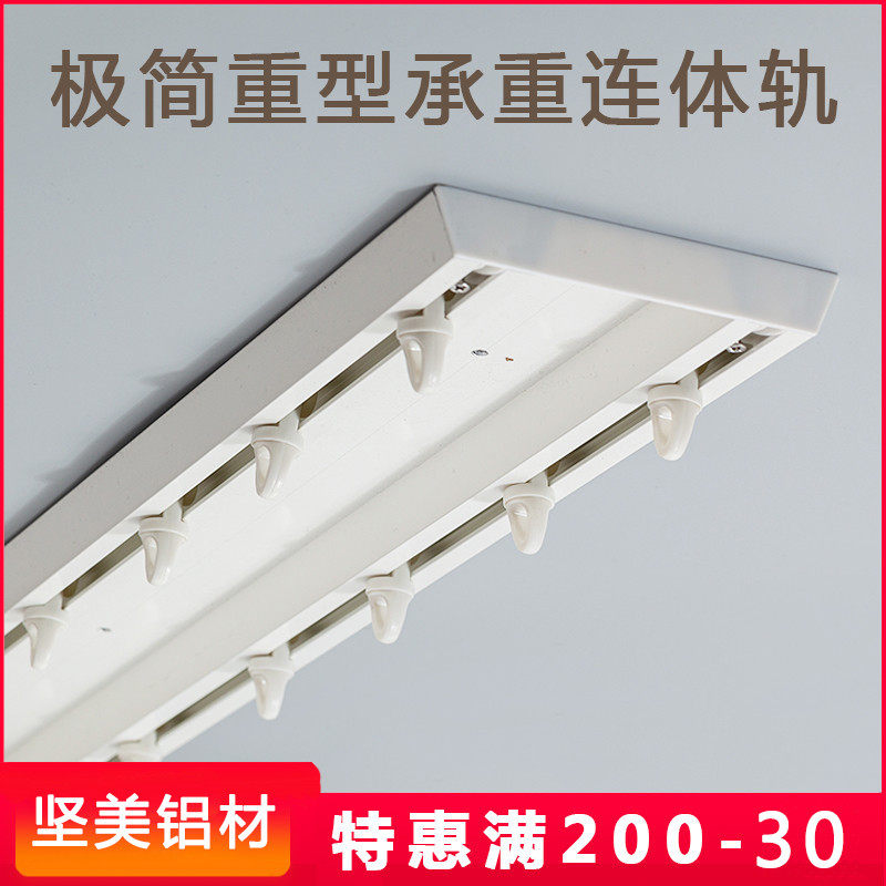 加厚重型连体窗帘轨道顶装双轨静音V型铝合金导轨滑轨窗帘杆滑道