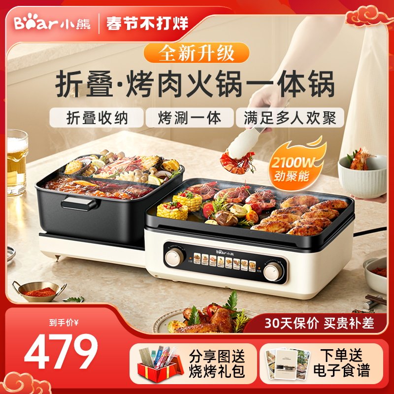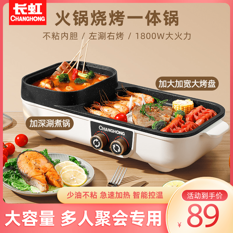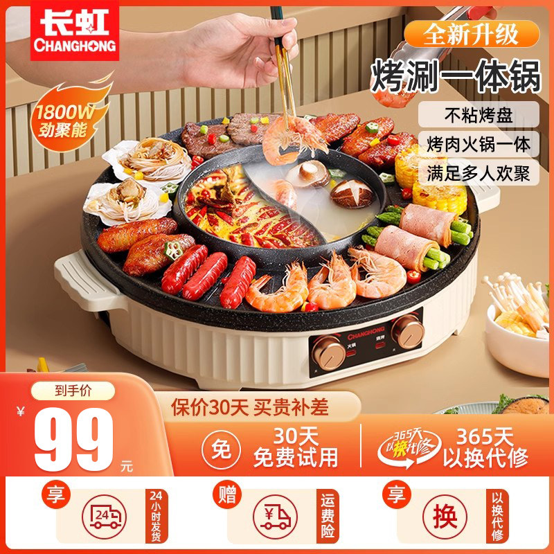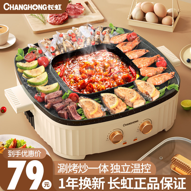 长虹火锅锅电烧烤炉一体锅家用多功能韩式烤盘涮烤两用烤鱼烤肉机