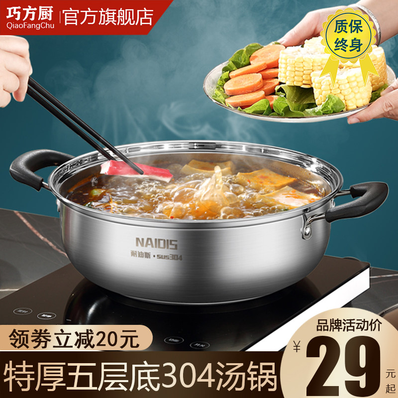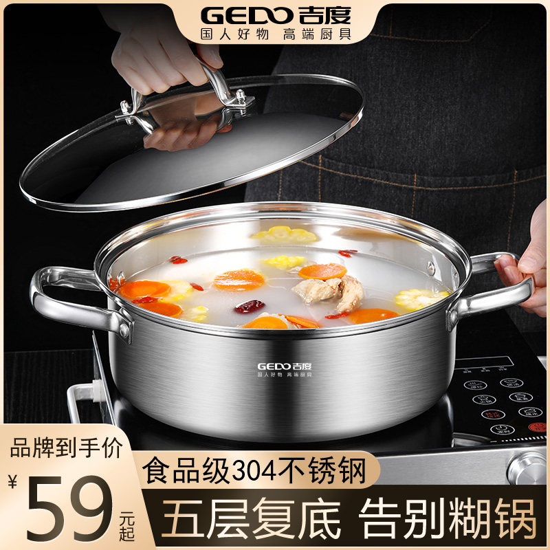 汤锅304不锈钢火锅锅家用不粘锅加厚专用煮锅馒头电磁炉煤气灶用