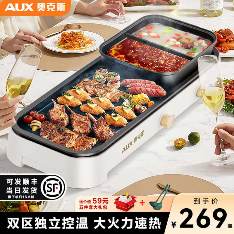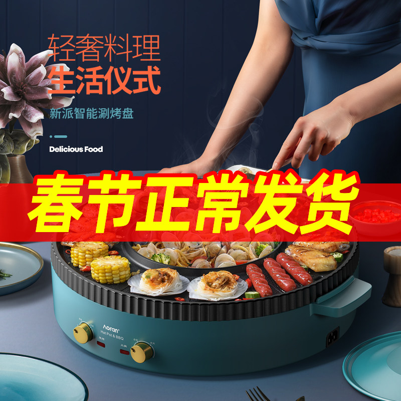 奥然多功能火锅锅电烧烤炉一体锅家用韩式烤盘涮烤两用烤肉烤鱼机