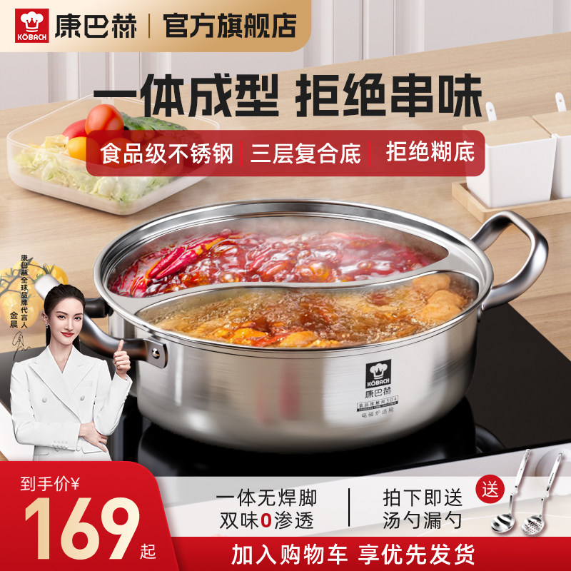 鸳鸯锅电磁炉专用锅火锅家用加厚304不锈钢一体成型涮火锅盆锅具