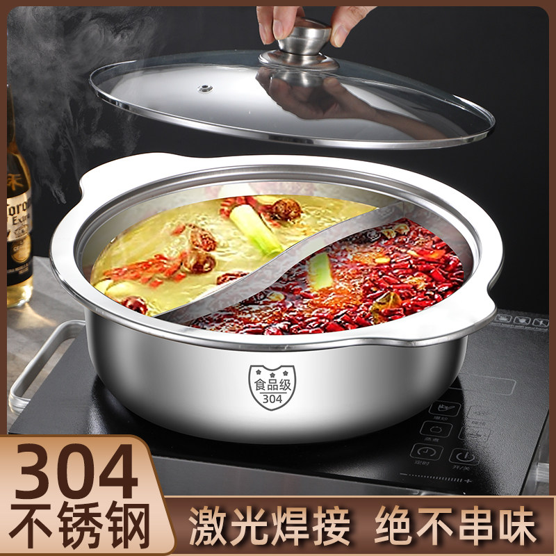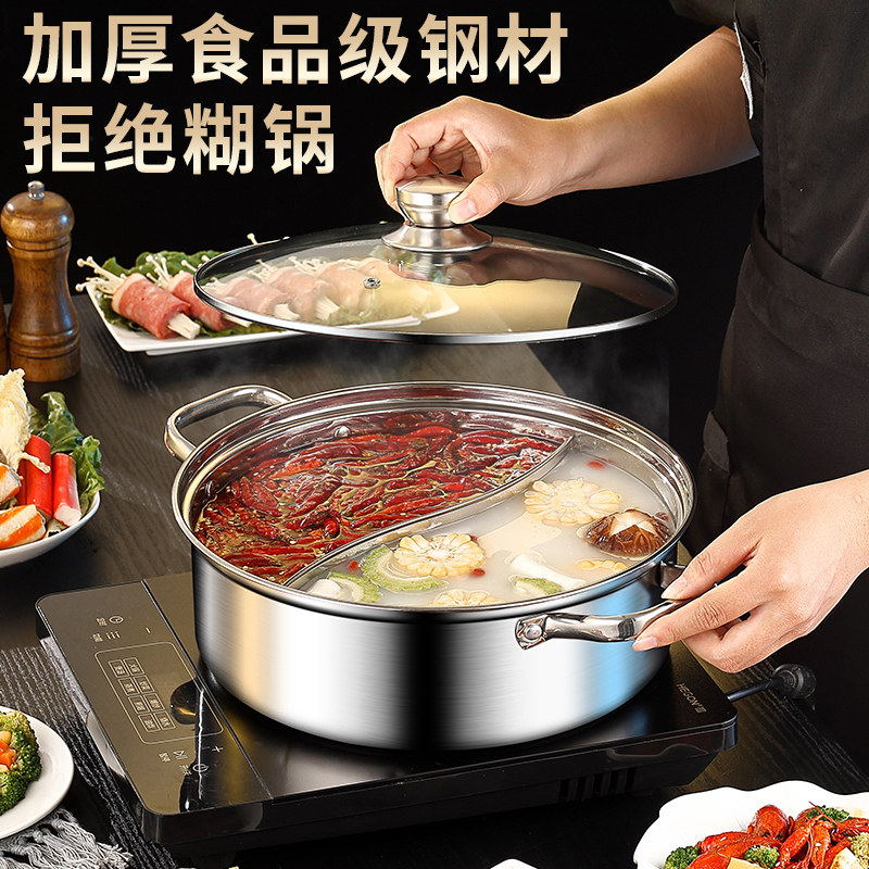 鸳鸯锅火锅家用304不锈钢电磁炉专用锅涮锅火锅盆加厚锅具大容量