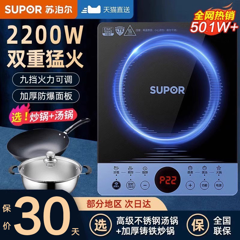 苏泊尔电磁炉家用小型智能圆形火锅炒菜节能电池炉官方旗舰店正品