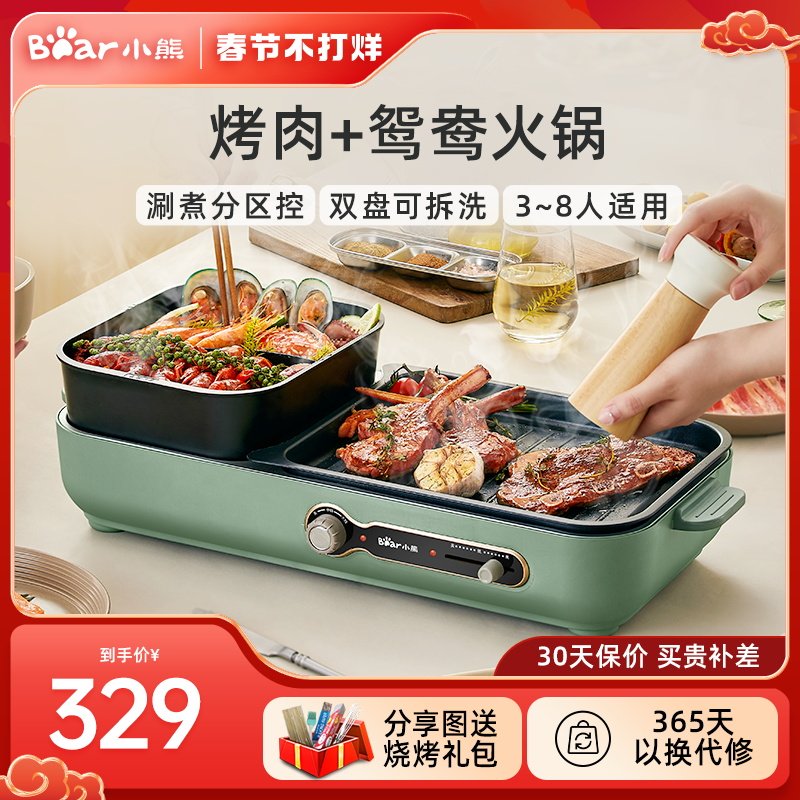 九阳电火锅鸳鸯锅火锅家用锅秒涮电热锅电磁炉煎烤分体式大容量