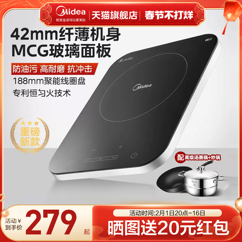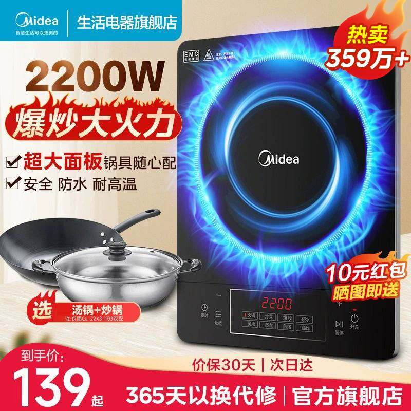美的电磁炉家用大火力炒菜多功能火锅一体全套节能铂钻电池炉新款
