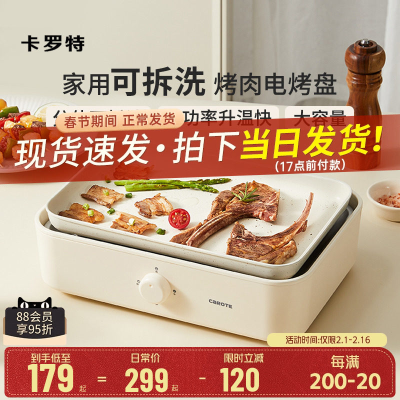 卡罗特烤肉盘电烤盘家用烤鱼料理锅室内可拆卸烤锅火锅烧烤电烤炉