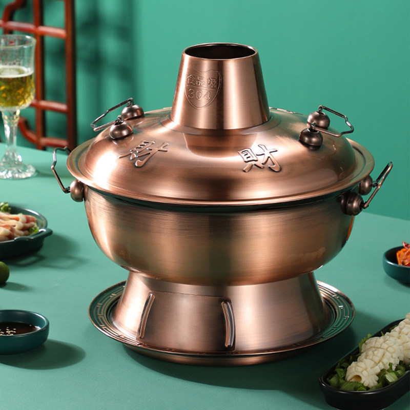 老北京铜火锅家用仿铜老式紫铜火锅木炭火锅炉商用涮羊肉电碳两用