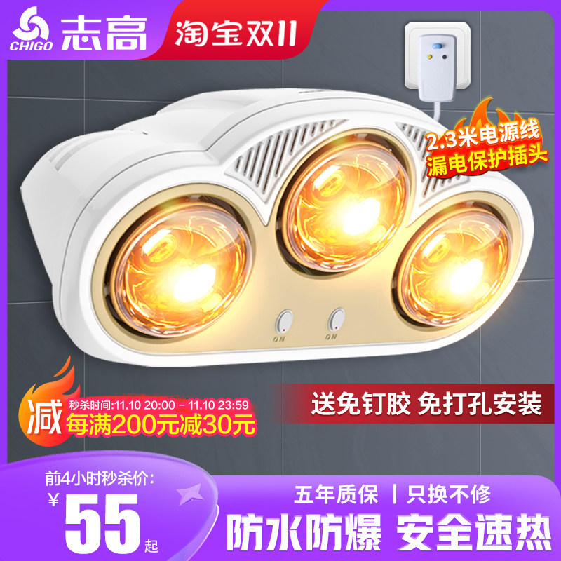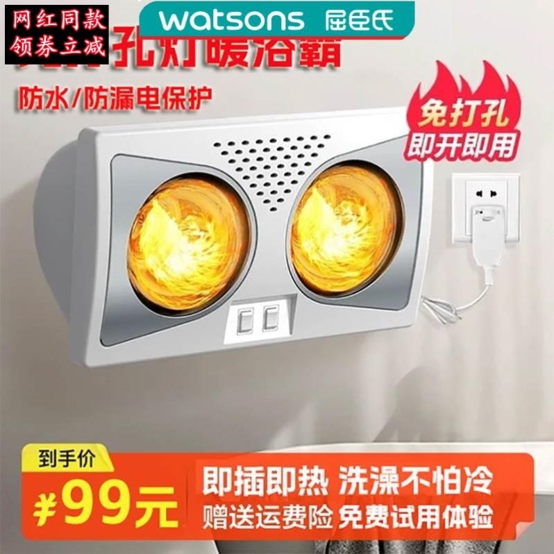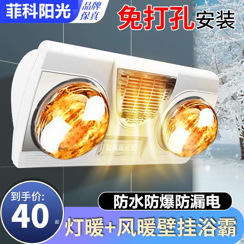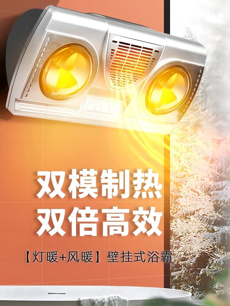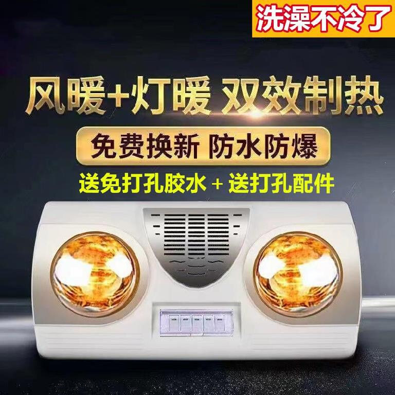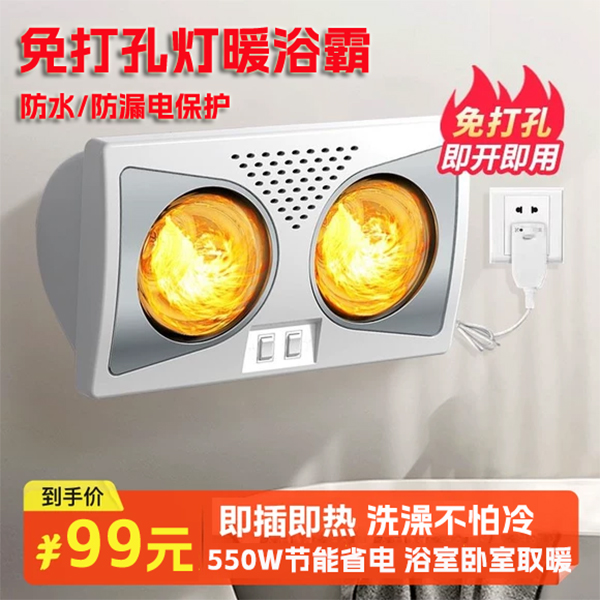 双头浴霸灯小太阳家用防水可打孔节能一体出租房壁挂式灯暖挂壁墙