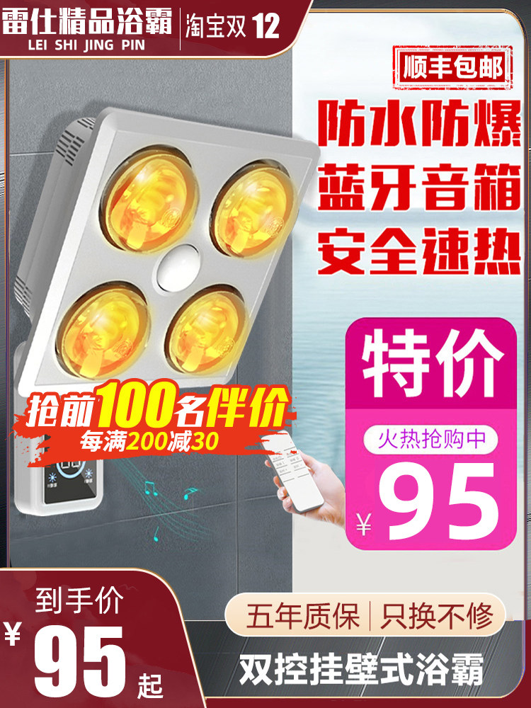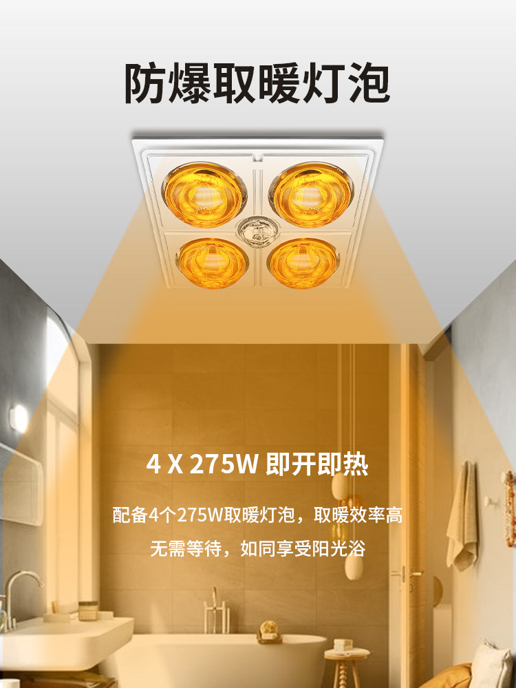 灯暖洗澡卫生间壁挂式取暖灯泡浴霸浴室挂墙挂壁防水四灯