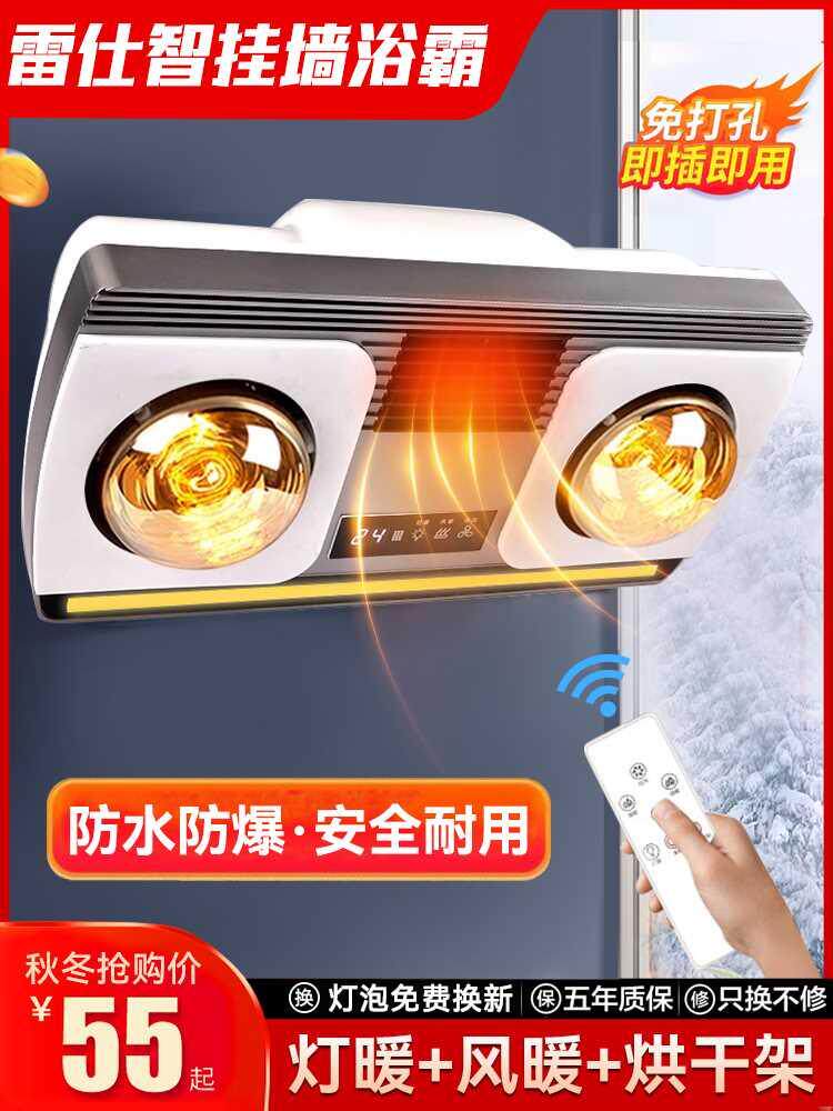 雷仕智壁挂式灯暖浴霸免打孔卫生间浴室老式取暖灯泡挂墙一体暖风