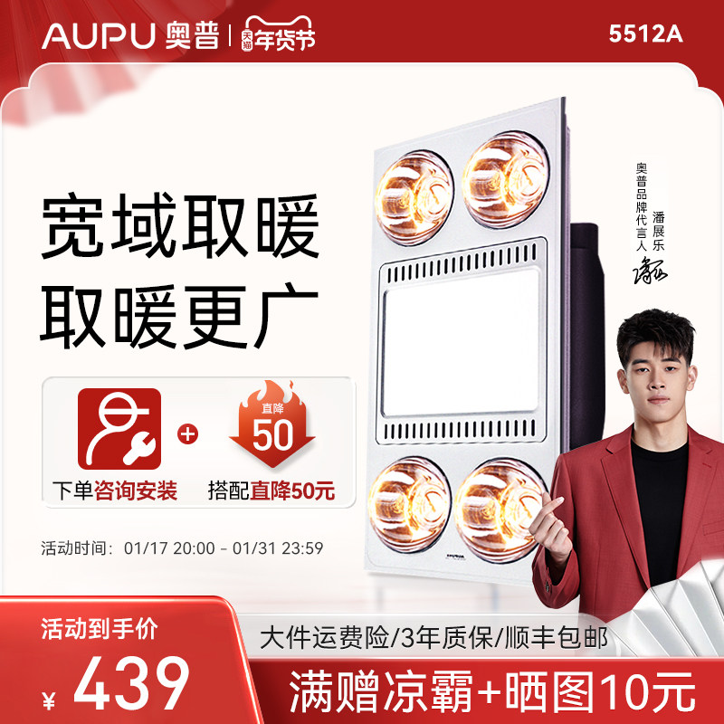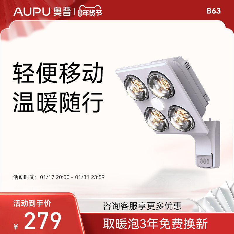 奥普灯暖浴霸灯照明壁挂式三合一取暖家用卫生间浴室挂墙打孔暖灯
