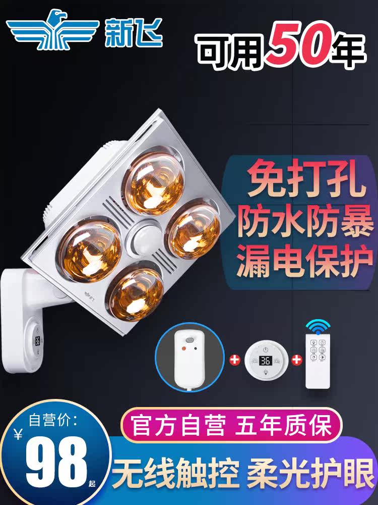 浴霸壁挂式灯暖卫生间取暖挂墙挂免打孔防水防爆浴室四灯泡壁式
